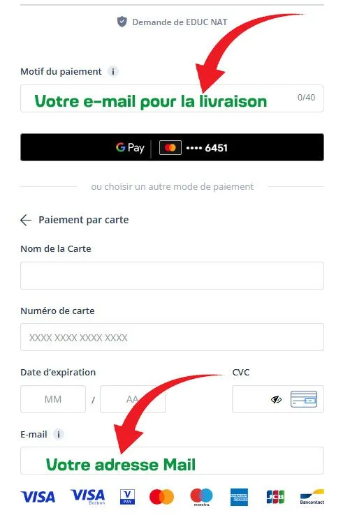 •Motif du paiement : Votre Email
